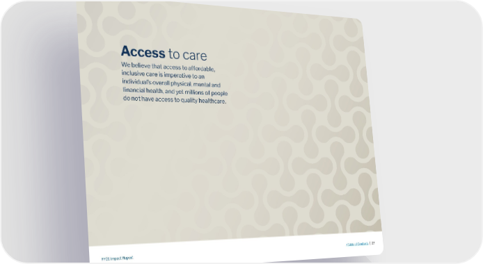 Access to care We believe that access to affordable, inclusive care is imperative to an individual’s overall physical, mental and financial health, and yet millions of people do not have access to quality healthcare. >Table of Contents | 27 FY21 Impact Report