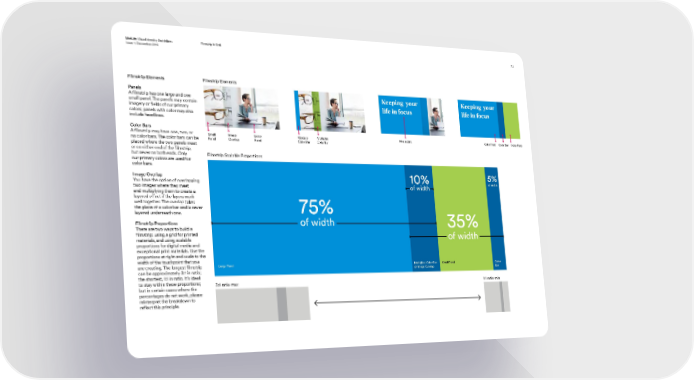 MetLife Visual Identity Guidelines Filmstrip & Grid 7.2 Issue 1: December 2016 Filmstrip Elements Filmstrip Elements Panels Keeping your Keeping your A filmstrip has one large and one small panel. The panels may contain life in focus life in focus imagery or fields of our primary colors; panels with color may also include headlines. Color Bars A filmstrip may have one, two, or Small Image Large Opaque Multipled Messaging Color Field Color Bar Color Field no color bars. The color bars can be Panel Overlap Panel Color Bar Color Bar placed where the two panels meet or on either end of the filmstrip, but never on both ends. Only Filmstrip Scalable Proportions our primary colors are used for color bars. Image Overlap 10% 5% You have the option of overlapping of width of width two images where they meet and multiplying them to create a layered effect if the layers work well together. The overlap takes the place of a color bar and is never 75% layered underneath one. Filmstrip Proportions of width 35% There are two ways to build a filmstrip: using a grid for printed of width materials, and using scalable proportions for digital media and exceptional print materials. Use the proportions at right and scale to the width of the touchpoint that you are creating. The longest filmstrip Large Panel Multiplied Color Bar Small Panel Color can be approximately 3:1 in ratio; or Image Overlap Bar the shortest, 1:1 in ratio. It’s ideal to stay within these proportions; 3:1 ratio max 1:1 ratio min but in certain cases where the percentages do not work, please reinterpret the breakdown to reflect this principle.