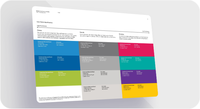 MetLife Visual Identity Guidelines Color 4.2 Issue 1: December 2016 Color Palette Specifications High Prominence Low Prominence Primary Neutrals Secondary The way we use color is important. Blue and Green are our primary Our neutrals are used more sparingly than our primary colors. Neutrals Our vibrant secondary palette brings energy to our visual system but brand colors and should be dominant in our communications. Our primary are used to support our primary colors and when tonal colors are necessary. plays a small role. Our secondary colors should be used sparingly to colors should be used together, in equal amounts, with plenty of white accent our primary palette. space to add modernity and freshness. Typography is primary black. Coated and Uncoated Stock On-screen Coated and Uncoated Stock On-screen Coated and Uncoated Stock On-screen MetLife Blue R:0 G:144 B:218 MetLife Dark Gray R:117 G:120 B:123 MetLife Berry R:219 G:10 B:91 © (or PANTONE 2193) HEX: #0090DA (or PANTONE Cool Gray 9) HEX: #75787B (or PANTONE 2040) HEX: #DB0A5B C:89 M:18 Y:0 K:0 C:30 M:22 Y:17 K:57 C:0 M:96 Y:43 K:0 Coated and Uncoated Stock On-screen Coated and Uncoated Stock On-screen Coated and Uncoated Stock On-screen MetLife Dark Blue R:0 G:97 B:160 MetLife Medium Gray R:167 G:168 B:170 MetLife Teal R:0 G:172 B:160 (or PANTONE 2384) HEX: #0061A0 (or PANTONE Cool Gray 6) HEX: #A7A8AA (or PANTONE 2399) HEX: #00ACA0 C:99 M:48 Y:1 K:14 C:16 M:11 Y:11 K:27 C:90 M:0 Y:43 K:0 Coated and Uncoated Stock On-screen Coated and Uncoated Stock On-screen Coated and Uncoated Stock On-screen MetLife Green R:164 G:206 B:78 MetLife Gray R:217 G:217 B:214 MetLife Purple R:95 G:37 B:159 (or PANTONE Cool Gray 2) HEX: #D9D9D6 (or PANTONE 267) HEX: #5F259F (or PANTONE 2300) HEX: #A4CE4E C:40 M:0 Y:89 K:0 C:5 M:3 Y:5 K:11 C:82 M:97 Y:0 K:0 Coated and Uncoated Stock On-screen Coated and Uncoated Stock On-screen MetLife Light Gray R:242 G:242 B:242 MetLife Yellow R:255 G:198 B:0 (or PANTONE Cool Gray 1) HEX: #F2F2F2 (or PANTONE 7548) HEX: #FFC600 C:4 M:2 Y:4 K:8 C:0 M:12 Y:98 K:0 The colors shown on this page and throughout these guidelines have been evaluated by Pantone, Inc., for accuracy and may not match the PANTONE Color Standards. Consult current PANTONE publications for © accurate color. PANTONE is the property of Pantone, Inc.