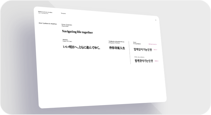 MetLife Visual Identity Guidelines Typography 5.5 Issue 1: December 2016 Asian Typefaces for Headlines Roman Characters Utopia Bold Navigating life together Japanese Traditional and Simplified Chinese Korean Ryumin Pr5 Heavy M Sung Bold (PRC & HK) YD Hope Medium Waiting for decision Option 1 YD Pine Needle Medium Option 2