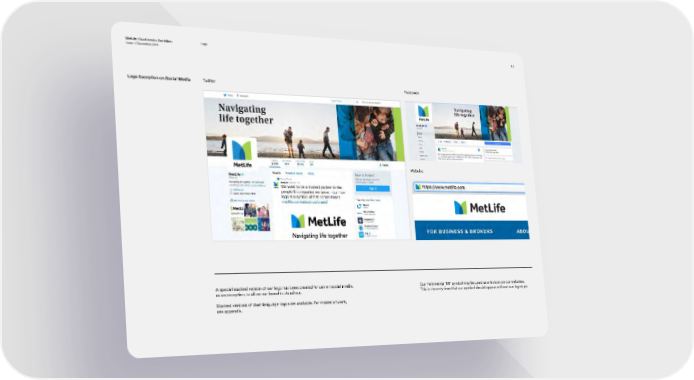 MetLife Visual Identity Guidelines Logo 3.3 Issue 1: December 2016 Logo Exception on Social Media Twitter Facebook Website A special stacked version of our logo has been created for use on social media, Our Partnership "M" symbol may be used as a favicon on our websites. as an exception, to allow our brand to stand out. This is the only time that our symbol should appear without our logotype. Stacked versions of dual-language logos are available. For master artwork, see appendix.