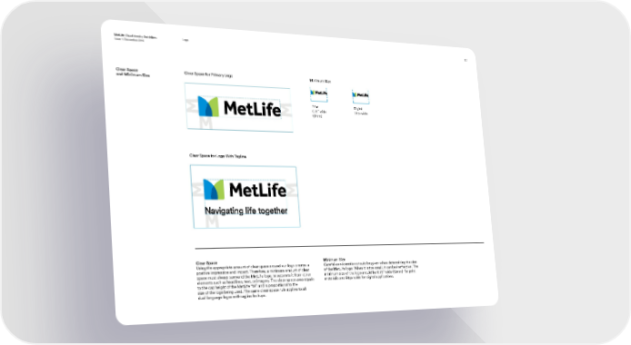 MetLife Visual Identity Guidelines Logo 3.7 Issue 1: December 2016 Clear Space Clear Space for Primary Logo Minimum Size and Minimum Size Print Digital 0.75” wide 54px wide (19mm) Clear Space for Logo With Tagline Clear Space Minimum Size Using the appropriate amount of clear space around our logo creates a Careful consideration should be given when determining the size positive impression and impact. Therefore, a minimum amount of clear of the MetLife logo. When it is too small, it can be ineffective. The space must always surround the MetLife logo, to separate it from other minimum size of the logo should be 0.75” wide (19mm) for print elements such as headlines, text, or imagery. The clear-space area equals materials and 54px wide for digital applications. to the cap height of the MetLife “M” and is proportional to the size of the logo being used. The same clear-space rule applies to all dual-language logos with tagline lockups.
