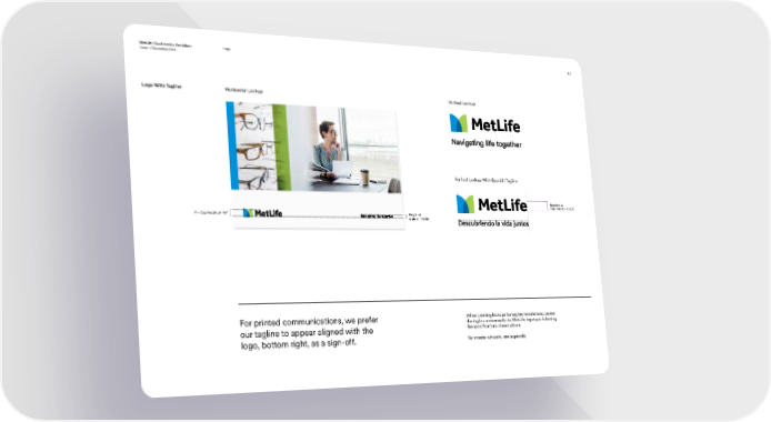 MetLife Visual Identity Guidelines Logo 3.5 Issue 1: December 2016 Logo With Tagline Horizontal Lockup Vertical Lockup Vertical Lockup With Spanish Tagline Baseline to Ca eigt 0.85X Baseline to Cap Height = 0.85X X = Cap height of “M” Height of Baseline to Ca eigt 0.85X tagline = 0.45X Tagline Centered, Justified: Different Tagline Baselines, 0.85X Distance from Wordmar Baseline to Tagline Ca eigt Tagline Centered, Justified: Different Tagline Baselines, 0.85X Distance from Wordmar Baseline to Tagline Ca eigt For printed communications, we prefer When creating lockups for tagline translations, center the tagline underneath the MetLife logotype following our tagline to appear aligned with the the specifications shown above. logo, bottom right, as a sign-off. For master artwork, see appendix.
