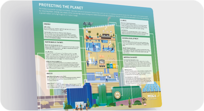 PROTECTING THE PLANET We believe a greener business is a better business and environmental leadership is critical to 21st century corporate leadership. We preserve the environment by reducing water, energy and waste, while increasingly purchasing environmentally preferable materials. We are committed to renewable electricity and being a global leader in the fight against climate change. CLIMATE Resort-Level Climate Risk Assessment In 2021, we undertook a detailed climate risk and opportunity assessment to identify and assess the climate-related risks and opportunities facing our company. Additionally, we assessed resort-level physical climate risks, ENERGY gaining knowledge for property-specific risk mitigation planning. LED Lighting Solar Electricity We have installed over 1.4 million Light Emitting Diodes (LED) in one of At the end of 2021, MGM had approximately 110MW of installed solar America’s largest lighting retrofit projects. capacity. Our bold action to decarbonize our electricity supply is helping us enable strong progress on our interim and long-term climate goals. Heating, Ventilation & Air Conditioning (HVAC) Efficiency We have invested tens of millions of dollars in HVAC efficiency projects including multiple central plant upgrades and over 1,000 variable speed DESIGN & DEVELOPMENT drives on fans, pumps and motors to ensure less energy is needed to move air and liquids around our buildings. Certified Buildings Nearly 90% of MGM Resorts’ portfolio (by square feet) is certified to one or more of the following environmental certifications: LEED (majority LEED SUSTAINABLE EVENTS Gold), Green Globes, Green Key, China Green Building, ISO 140001 or ISO 50001. Environmentally Sustainable Venues Stay Well™ Rooms And Meetings All of our large event venues have unique environmental attributes, including We offer guests an enhanced stay by investing in guest and meeting room Mandalay Bay Conference Center – our flagship venue that has America’s features aligned with Stay Well™ standards. Example amenities in Stay Well™ largest contiguous rooftop solar array. rooms include air purification, energizing and specialized lighting and Food Donations shower infusers. Events sometimes result in unserved food. Where possible in our large convention properties, we aim to safely donate quality unserved food to people in our communities. Across our resorts, we donate three major food MATERIALS & WASTE types to charities: perishable prepared food, perishable unprepared and non-perishable food and beverages from minibar/warehouse food. Environmentally Preferable Purchasing Sustainable Events Engagement We recognize that the materials we choose and products we buy drive Las Vegas is a global hub for meetings and conventions and sports and much of our lifecycle environmental impact. These choices also affect our entertainment. We are very focused on helping event planners understand ability to manage waste, since some materials are more durable, recyclable and implement more socially and environmentally sustainable practices. or reusable than others. We have concentrated buying power in some of Our program is encapsulated in a user-friendly deck of 52 sustainable event our markets and use that power to advance environmentally preferable ideas, that we regularly use with clients. purchasing in many categories. Materials Diversion In one of the hospitality industry’s most comprehensive materials diversion WATER programs, we capture and divert over 30 materials from landfills. This includes common materials such as glass, metal and plastics as well as Water Efficient Equipment & Appliances nontraditional items such as hangers, towels and oysters. We prioritize water-efficient equipment and appliances including automatic Food Waste Diversion & Reduction faucets for sinks, low-flow bathroom fixtures and high performance As a core aspect of our overall material diversion program, we also have commercial dishwashers. a highly respected food waste diversion program. We work on source Water Efficient Landscaping reduction to avoid waste being generated from the start, and also send In Las Vegas we converted over 200,000 square feet of real grass to artificial tens of thousands of tons of food scraps to animals, comingled food and turf or desert-friendly landscape to help reduce our consumptive water use compostable disposables to compost, and grease to biofuel. (water we don’t send back to the source). MGM Resorts International / mgmresorts.com/ESG 15