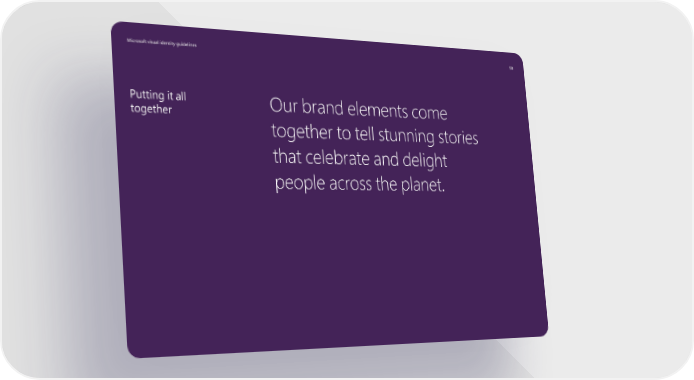 Microsoft visual identity guidelines 58 Putting it all Our brand elements come together together to tell stunning stories that celebrate and delight people across the planet.