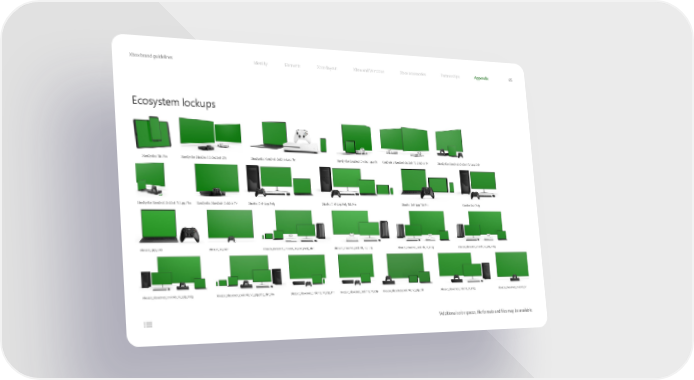 Xbox brand guidelines Identity Elements Xbox layout Xbox and Windows Xbox accessories Partnerships Appendix 65 Ecosystem lockups XboxDynEco_Tblt_Phn XboxDynEco_XboxOne_S_X_CnslCntlr_2TV XboxDynEco_XboxOneS_CnslCntlr_Lptp_Phn XboxDynEco_XboxOneS_CnslCntlr_Lptp_TV XboxDynEco_XboxOneS_CnslCntlr_TV_CnslCntlr_TV XboxDynEco_XboxOneX_CnslCntlr_TV_Lptp_Cntlr XboxDynEco_XboxOneX_CnslCntlr_TV_Lptp_Phn XboxDynEco_XboxOneX_CnslCntlr_TV XboxEco_Cntlr_Lptp_Pcrig XboxEco_Cntlr_Lptp_Pcrig_Tblt_Phn XboxEco_Cntlr_Lptp_Tblt_Phn XboxEco_Cntlr_Pcrig XboxEco_Lptp_Cntlr XboxEco_TV_Cntlr XboxEco_XboxOneS_CnslCntlr_TV_Lptp_PCrig_Tblt XboxEco_XboxOneS_CnslCntlr_TV_PCrig XboxEco_XboxOneS_CnslCntlr_TV_PCrig XboxEco_XboxOneS_CnslCtlr_TV_Lptp_PCrig XboxEco_XboxOneX_CnslCntlr_TV_Lptp_Pcrig XboxEco_XboxOneX_CnslCntlr_TV_Lptp_Pcrig_Tblt_Phn XboxEco_XboxOneX_CnslCntlr_TV_Lptp_Phn XboxEco_XboxOneX_CnslCntlr_TV_Lptp XboxEco_XboxOneX_CnslCntlr_TV_Lptp_Tblt XboxEco_XboxOneX_CnslCntlr_TV_Pcrig XboxEco_XboxOneX_CnslCntlr_TV *Additional color spaces, file formats and files may be available.