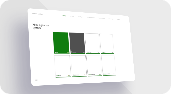 Xbox brand guidelines Identity Elements Xbox layout Xbox and Windows Xbox accessories Partnerships Appendix 7 Xbox signature layouts