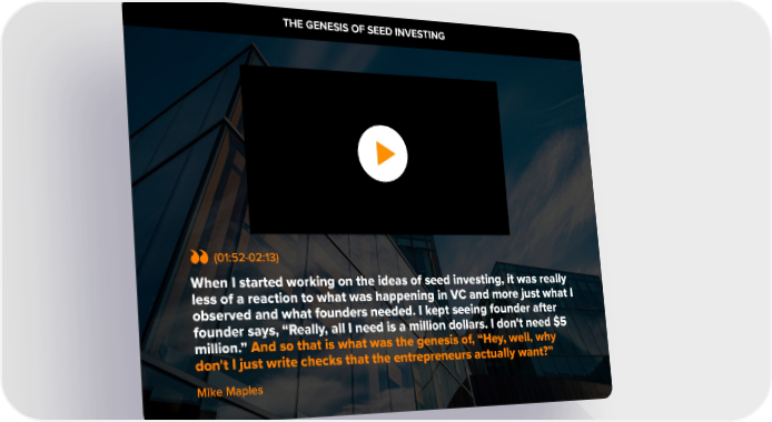 THE GENESIS OF SEED INVESTING 1. Domestic & General started out over 100 years ago, ensuring cattle and sheep rights. So not long after the Titanic went down there was a need all of a sudden to have protection and insurance on your livestock. (01:52-02:13) When I started working on the ideas of seed investing, it was really less of a reaction to what was happening in VC and more just what I observed and what founders needed. I kept seeing founder after founder says, “Really, all I need is a million dollars. I don't need $5 million.” And so that is what was the genesis of, “Hey, well, why don't I just write checks that the entrepreneurs actually want?” Mike Maples