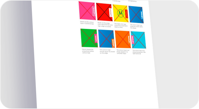 Motorola toolkit Lenovo logo 23 02.06.2017 Never use the single color logo when full color logo usage is possible The single color logo must only be applied in black or white Never orientate the Lenovo logo in the wrong direction The Lenovo logo must never be used in yellow The Lenovo logo must always appear in a different color to the Motorola Emsignia The Lenovo logo must always be placed on the right hand side The Lenovo logo must always be visible within the design The Lenovo logo should never be placed on the edge Never change the proportions of the Lenovo logo The Lenovo logo must always appear in a different color to the Motorola logo The Lenovo logo must always appear in its container shape Never use the Lenovo logo in outline format What not to do with the Lenovo logo