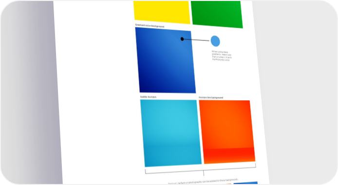 Motorola toolkit Imagery 48 02.06.2017 1. Backgrounds Backgrounds form the foundation for our imagery. From solid to gradient colors we use light and shade to create depth and contrast, allowing our imagery to stand out and get noticed. Graphic color backgrounds Our bold and confident colors act as a bright canvas that showcase our products and messages, creating striking and distinctive communications. Flat color background Gradient color background When using deep gradients, make sure that an area is true to the Motorola color. Product, pattern or photography can be applied to these backgrounds. Gradient color background Horizon line background Subtle horizon