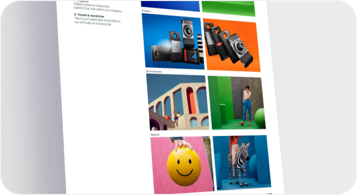 Motorola toolkit Imagery 47 02.06.2017 How imagery is used Our imagery can be applied in a number of ways: 1. Backgrounds High-definition product photographs or renders. 2. Product Flat and graduated colors are used to create depth and contrast, to help our imagery to stand out. 3. Environments Found or created environments ground our imagery in reality. 4. Objects Objects play an important supporting role within our imagery. 5. Talent & wardrobe Talent and wardrobe that reflects our attitude and character. Environments Backgrounds Product Objects Talent & wardrobe