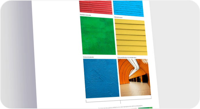 Motorola toolkit Imagery 49 02.06.2017 1. Backgrounds Textured color backgrounds For added dimension and interest our colors can be usedas a textured background. These textures can be part of a broader architectural environment, or simply a close cropped element of texture that fills the frame. Metal shutters Painted concrete Stained wood Texture can be used to enhance our color backgrounds within photography. Painted wall Coloured plaster Coloured texture in architecture
