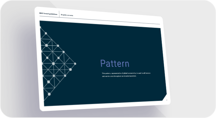 41 Graphic accents MSCI brand guidelines Pattern This pattern, representative of global connectivity, is used to add texture and can be seen throughout our branded materials. MSCI Page 40 Page 42