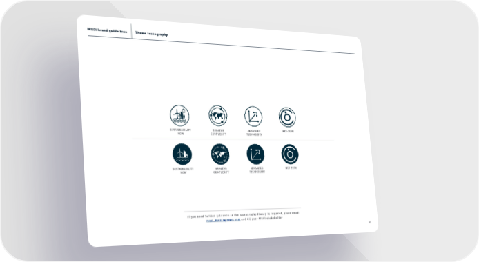 50 MSCI brand guidelines ADVANCED TECHNOLOGY NETZERO NETZERO ADVANCED TECHNOLOGY SUSTAINABILITY NOW SUSTAINABILITY NOW GREATER COMPLEXITY GREATER COMPLEXITY Theme iconography If you need further guidance or the iconography library is required, plase email [email protected] and CC your MSCI stakeholder