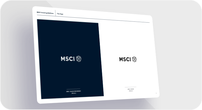 The logo MSCI brand guidelines 7 ONE-COLOR REVERSED (White) ONE-COLOR (Black) MSCI Brand Book Page 6 Page 8