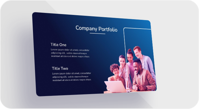 Company Portfolio Title One Lorem ipsum dolor sit amet, consectetur adipiscing elit, sed do eiusmod tempor incididunt ut labore et dolore magna aliqua. Title Two Lorem ipsum dolor sit amet, consectetur adipiscing elit, sed do eiusmod tempor incididunt ut labore et dolore magna aliqua.