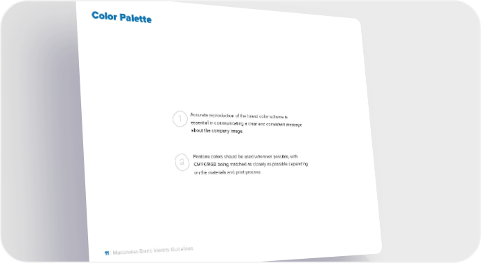 11 | Musicnotes Brand Identity Guidelines Accurate reproduction of the brand color scheme is essential in communicating a clear and consistent message about the company image. Pantone colors should be used wherever possible, with CMYK/RGB being matched as closely as possible depending on the materials and print process. Color Palette