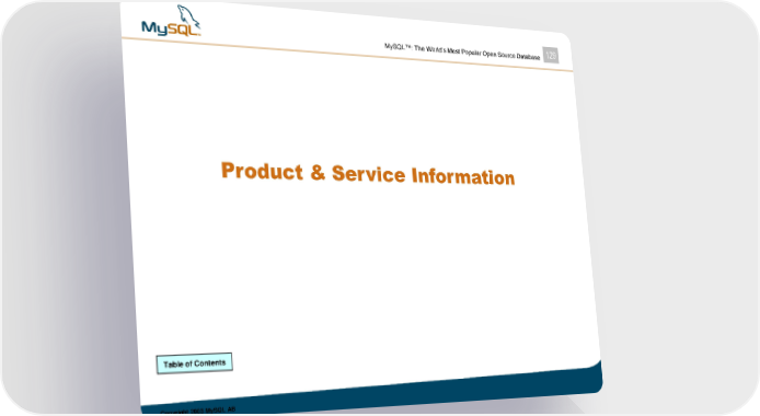MySQL™: The World’s Most Popular Open Source Database 129 Product & Service Information Table of Contents Copyright 2003 MySQL AB MySQL Page 128 Page 130