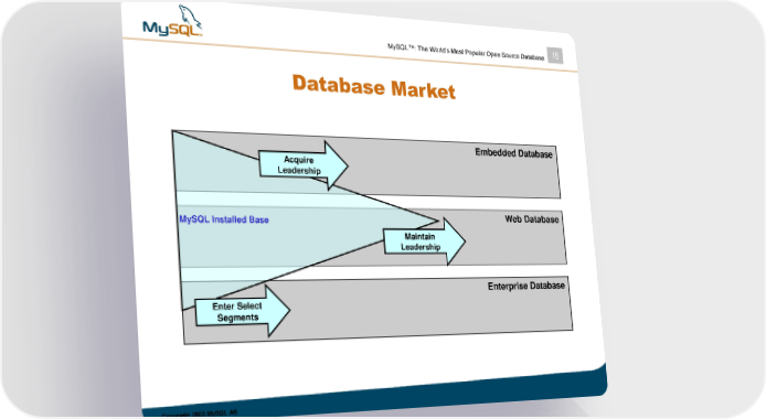 MySQL™: The World’s Most Popular Open Source Database 18 Database Market Embedded Database Acquire Leadership MySQL Installed Base Web Database Maintain Leadership Enterprise Database Enter Select Segments Copyright 2003 MySQL AB