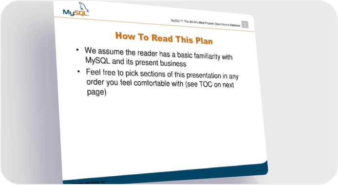 MySQL™: The World’s Most Popular Open Source Database 3 How To Read This Plan • We assume the reader has a basic familiarity with MySQL and its present business • Feel free to pick sections of this presentation in any order you feel comfortable with (see TOC on next page) Copyright 2003 MySQL AB