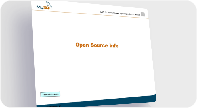 MySQL™: The World’s Most Popular Open Source Database 22 Open Source Info Table of Contents Copyright 2003 MySQL AB MySQL Page 21 Page 23