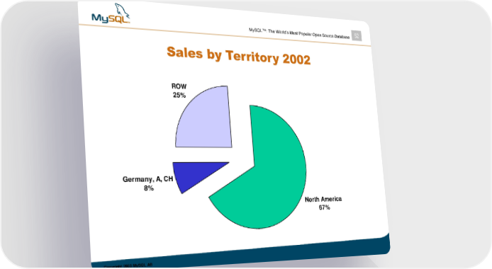 MySQL™: The World’s Most Popular Open Source Database 52 Sales by Territory 2002 ROW 25% Germany, A, CH 8% North America 67% Copyright 2003 MySQL AB MySQL Page 51 Page 53