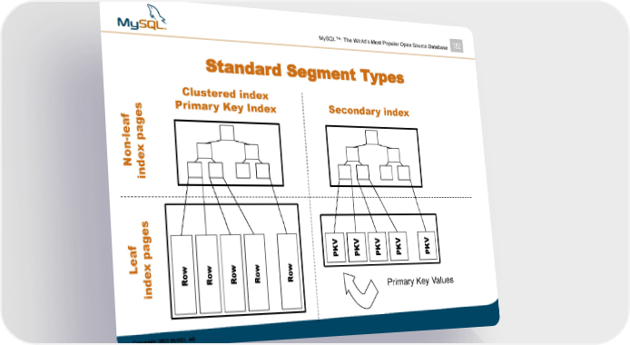 MySQL™: The World’s Most Popular Open Source Database 182 Standard Segment Types Clustered index Secondary index ges Primary Key Index leaf-a Non x pe ind ges V Leafx pa PKV PK PKV PKV PKV wRo Row Row Row Row inde Primary Key Values Copyright 2003 MySQL AB