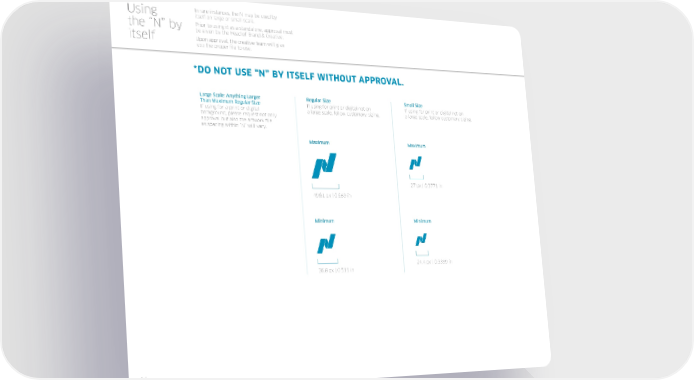 Using In rare instances, the N may be used by itself on large or small scale. the “N” by Prior to using it as a standalone, approval must be given by the Head of Brand & Creative. itself Upon approval, the creative team will give you the proper file to use. *DO NOT USE “N” BY ITSELF WITHOUT APPROVAL. Large Scale: Anything Larger Regular Size Small Size Than Maximum Regular Size If using for print or digital not on If using for print or digital not on If using for a print or digital a large scale, follow customary sizing. a large scale, follow customary sizing. background, please request not only approval but also the artwork file as spacing within “N” will vary. Maximum Maximum 27 px | 0.3771 in 49.61 px | 0.689 in Minimum Minimum 24.4 px | 0.3399 in 36.8 px | 0.511 in 14
