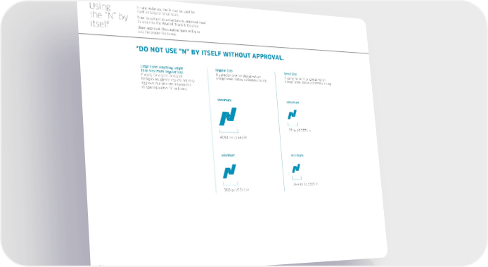 Using In rare instances, the N may be used by itself on large or small scale. the “N” by Prior to using it as a standalone, approval must be given by the Head of Brand & Creative. itself Upon approval, the creative team will give you the proper file to use. *DO NOT USE “N” BY ITSELF WITHOUT APPROVAL. Large Scale: Anything Larger Regular Size Small Size Than Maximum Regular Size If using for print or digital not on If using for print or digital not on If using for a print or digital a large scale, follow customary sizing. a large scale, follow customary sizing. background, please request not only approval but also the artwork file as spacing within “N” will vary. Maximum Maximum 27 px | 0.3771 in 49.61 px | 0.689 in Minimum Minimum 24.4 px | 0.3399 in 36.8 px | 0.511 in 14