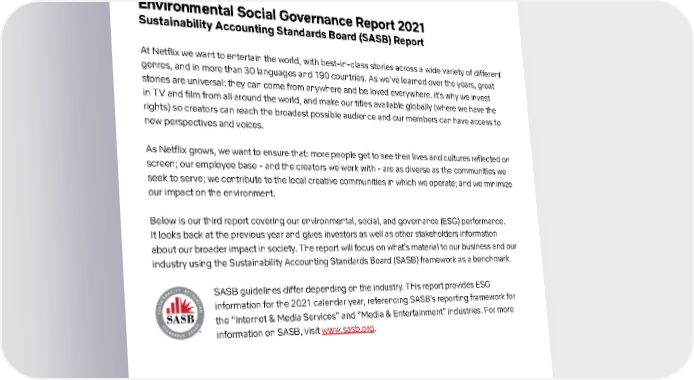 Netflix ESG Report Page 1 Page 3