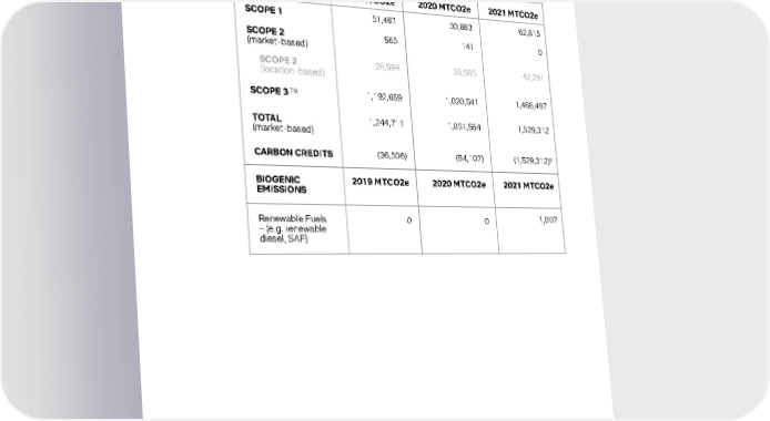 Environmental 9 Table 1: 2021 Greenhouse Gas Inventory 6 2019 MTCO2e 2019 MTCO2e 2020 MTCO2e 2020 MTCO2e SCOPE 1 SCOPE 2 (market-based) SCOPE 3 7 8 TOTAL (market-based) CARBON CREDITS BIOGENIC EMISSIONS Renewable Fuels – (e.g. renewable diesel, SAF) SCOPE 2 (location-based) 2021 MTCO2e 2021 MTCO2e 51,487 565 1,192,659 1,244,711 (36,506) 0 26,594 30,883 141 1,020,541 1,051,564 (54,107) 0 28,585 62,815 0 1,466,497 1,529,312 (1,529,312) 9 1,0 07 42,291 6 GHG emissions are accounted for and reported on according to industry-standard guidance and methodologies outlined in the Corporate Accounting and Reporting Standard by The Greenhouse Gas Protocol. 7 This includes categories 1-4, 6-8, and 11, as defined by the GHG Protocol Scope 3 Guidance. 8 We applied a volume of RECs to Scope 3 emissions where we had information on the specific energy consumption by location (e.g. for our Open Connect network). 9 See Table 4 2021 Carbon Offset Portfolio for a detailed summary of the offset credit we purchased for 2021.
