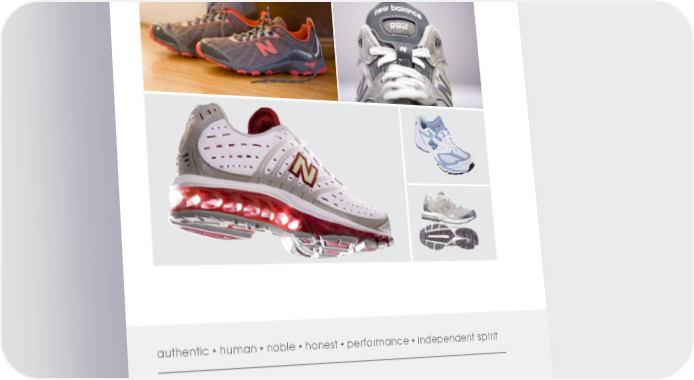 New Balance Brand Book Page 19 Page 21authentic • human • noble • honest • performance • independent spirit product A. Catalog B. Co-op C. Beauty a. Detail b. In the environment (non-performance) c. In the studio photography / product page 18