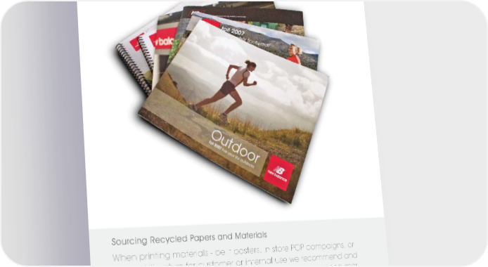 When printing materials - be it posters, in store POP campaigns, or product literature for customer or internal use we recommend and prefer that uncoated stock be specified with a 30% post consumer waste content. Your local print resource will be able to advise you regarding options available in your area. Sourcing Recycled Papers and Materials logo / paper usage page 38