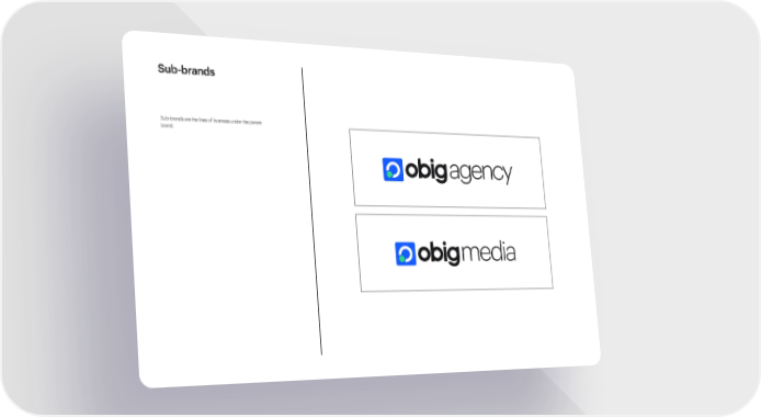 agency media Sub-brands Sub-brands are the lines of business under the parent brand. Obigtech Brand Book Page 28 Page 30