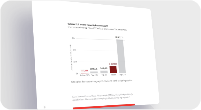 Outsized U.S. Income Inequality Persists in 2014 The incomes of the top 1% and 0.1% of U.S. families dwarf the bottom 99% $6,087,113 $6m p u o r g $4m h c a e n i e m o c$2m n i $1,260,508 e g a r e $295,845 $448,489 Av $33,068 $0 Bottom 90% Top 10% Top 5% Top 1% Top 0.1% No surprise that stagnant wages produce wild net worth and savings deficits. Source: Emmanuel Saez and !omas Pikkety’s analysis of IRS data. ©2015 Washington Center for Equitable Growth. Chart source: http://www.epi.org/publication/charting-wage-stagnation/ 24