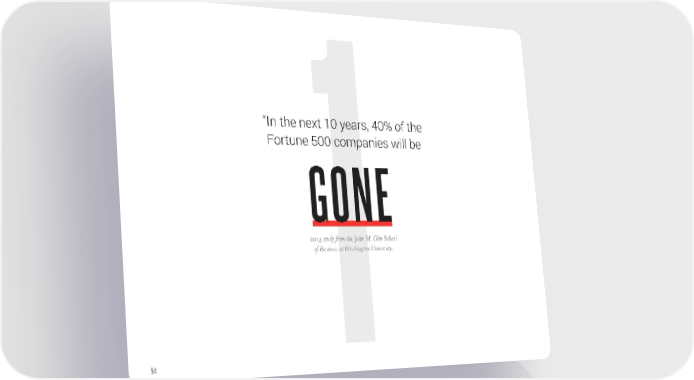 OgilvyRED Future of Work Flipbook Page 47 Page 49“In the next 10 years, 40% of the Fortune 500 companies will be GONE -2014 study from the John M. Olin School of Business at Washington University. 54