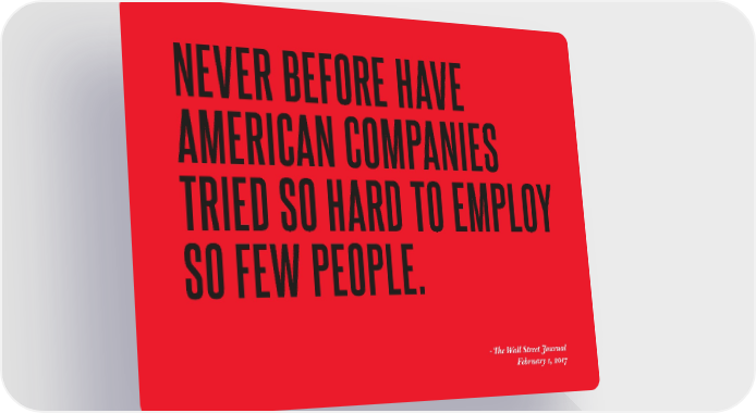 NEVER BEFORE HAVE AMERICAN COMPANIES TRIED SO HARD TO EMPLOY SO FEW PEOPLE. - !e Wall Street Journal February 1, 2017