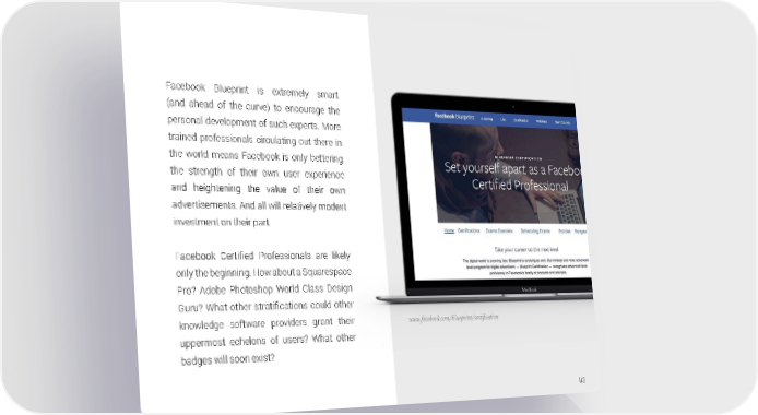 Facebook Blueprint is extremely smart (and ahead of the curve) to encourage the personal development of such experts. More trained professionals circulating out there in the world means Facebook is only bettering the strength of their own user experience and heightening the value of their own advertisements. And all will relatively modest investment on their part. Facebook Certified Professionals are likely only the beginning. How about a Squarespace Pro? Adobe Photoshop World Class Design Guru? What other stratifications could other knowledge software providers grant their www.facebook.com/blueprint/certiļ¬cation uppermost echelons of users? What other badges will soon exist? 143