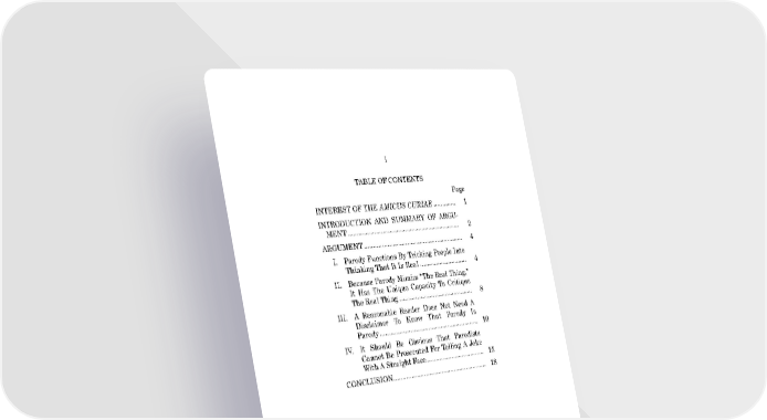 i TABLE OF CONTENTS Page INTEREST OF THE AMICUS CURIAE ............. 1 INTRODUCTION AND SUMMARY OF ARGU- MENT .................................................................. 2 ARGUMENT ........................................................ 4 I. Parody Functions By Tricking People Into Thinking That It Is Real ........................... 4 II. Because Parody Mimics “The Real Thing,” It Has The Unique Capacity To Critique The Real Thing .......................................... 8 III. A Reasonable Reader Does Not Need A Disclaimer To Know That Parody Is Parody ........................................................ 10 IV. It Should Be Obvious That Parodists Cannot Be Prosecuted For Telling A Joke With A Straight Face ................................. 15 CONCLUSION ..................................................... 18