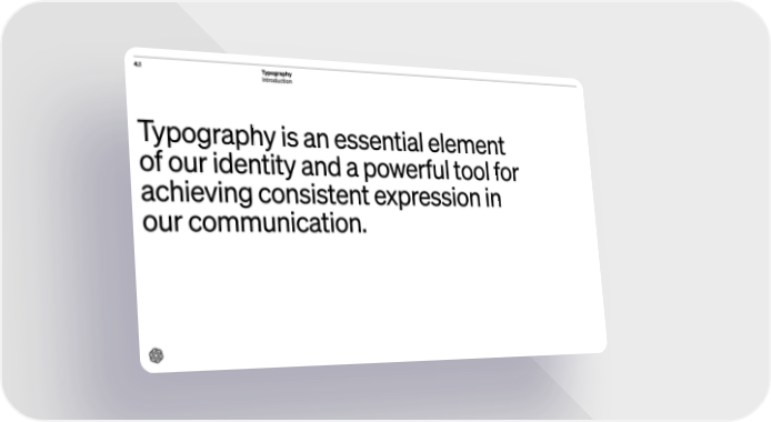 Open AI Brand Book Page 50 Page 524.1 Typography Introduction Typography is an essential element of our identity and a powerful tool for achieving consistent expression in our communication.