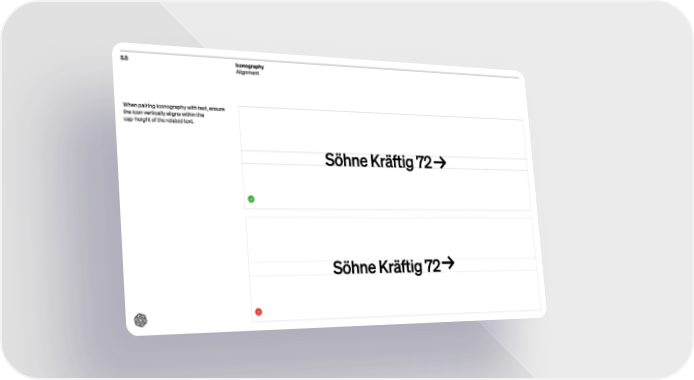 5.5 Iconography Alignment When pairing iconography with text , ensure the icon vertically aligns within the cap -height of the related text . Söhne Kräftig 72 Söhne Kräftig 72