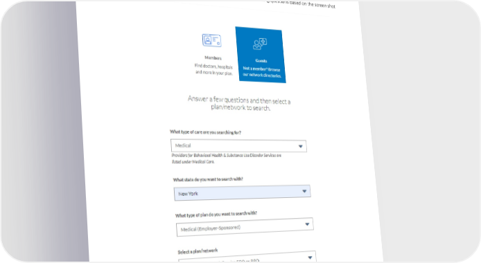 Empire Find a doctor Tool Navigate to www.empireblue.com/find-care. If you are currently a member, you may click member and enter your information. If you have not signed up yet, select “Guests”. Fill out the remaining questions based on the screen shot below: 12