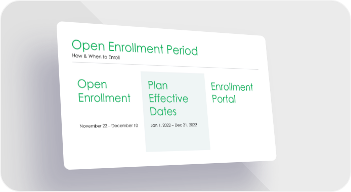 Open Enrollment Template Page 4 Page 6Open Enrollment Period How & When to Enroll Open Plan Enrollment Enrollment Effective Portal Dates November 22 –December 10 Jan 1, 2022 – Dec 31, 2022