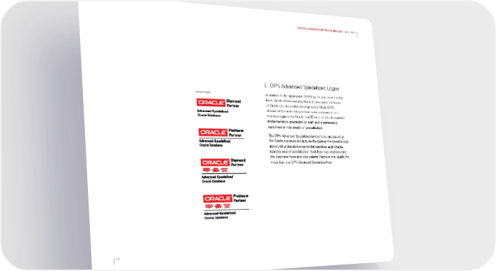 Oracle ParTNerNeTWOrK braNd GuideliNes OPN Advanced specialized logos Sample logos in addition to the appropriate OPN logo for your membership level, Oracle offers branding that indicates advanced levels of Oracle-specific technical competency. These OPN Advanced specialized logos brand your company as one that is recognized by Oracle, has 50 or more Oracle-certified implementation specialists on staff, and is preferred by customers in your area(s) of specialization. The OPN Advanced specialized partner logos are based on the Oracle signature and include the partner membership logo along with a descriptive name that identifies each Oracle- branded area of specialization. each logo was created using the corporate fonts and color palette. Partners may qualify for more than one OPN Advanced specialized logo. 20