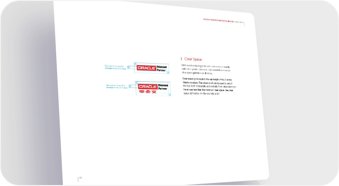 Oracle ParTNerNeTWOrK braNd GuideliNes Clear space x OPN membership logos should never compete visually Clear space [x] is equal to X with other graphic elements. use established minimum the height of the O in Oracle. clear-space guidelines at all times. x Clear space [x] is equal to the cap height of the O in the x Oracle signature. That distance should be used to set off Clear space [x] is equal to X the logo both horizontally and vertically from other elements. the height of the O in Oracle. Never use less than the minimum clear space. see clear x space defined by x in the example at left. 13