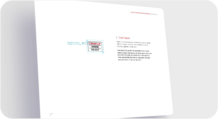 Oracle ParTNerNeTWOrK braNd GuideliNes Clear space x Oracle exastack Ready logos should never compete visually Clear space [x] is equal to X with other graphic elements. use established minimum the height of the O in Oracle. clear-space guidelines at all times. Clear space [x] is equal to the cap height of the O in the x Oracle signature. That distance should be used to set off the logo both horizontally and vertically from other elements. Never use less than the minimum clear space. see clear space defined by x in the example at left. 36
