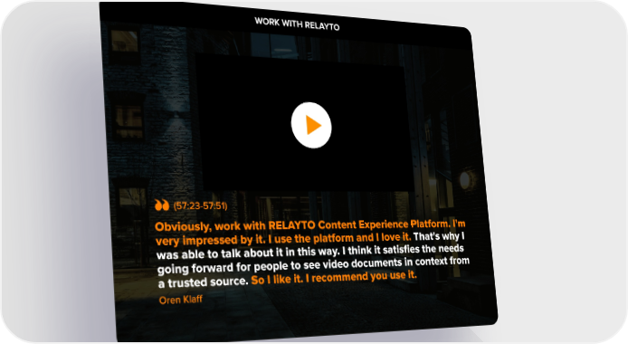 WORK WITH RELAYTO 1. Domestic & General started out over 100 years ago, ensuring cattle and sheep rights. So not long after the Titanic went down there was a need all of a sudden to have protection and insurance on your livestock. (57:23-57:51) Obviously, work with RELAYTO Content Experience Platform. I'm very impressed by it. I use the platform and I love it. That's why I was able to talk about it in this way. I think it satisfies the needs going forward for people to see video documents in context from a trusted source. So I like it. I recommend you use it. Oren Klaff