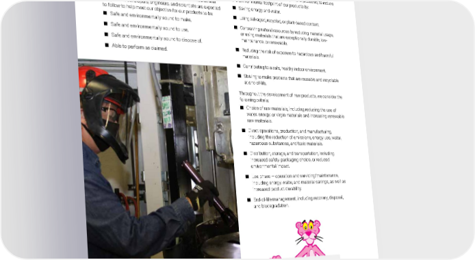 2021 Owens Corning Sustainability Report | Expanding Our Product Handprint | Product Innovation & Stewardship | 101 Photo submitted by: Jill Ries | Granville, Ohio, U.S. Marilyn Pennington follows proper protocol to check the asphalt tank. Product Stewardship Policies Owens Corning’s Business Code of Conduct requires that all new and significantly modified existing products receive at least one product stewardship review to ensure they comply with Owens Corning’s Environmental, Health, Safety, and Product Stewardship Policy, including regulatory compliance and other requirements. We have product stewardship guidelines and standards that our product developers, engineers, and scientists are expected to follow to help meet our objective for our products to be: ■ Safe and environmentally sound to make. ■ Safe and environmentally sound to use. ■ Safe and environmentally sound to dispose of. ■ Able to perform as claimed. The Purpose of Product Stewardship Our commitment to stewardship encourages us to thoroughly evaluate the sustainability of everything we do, from design to production — and to challenge ourselves to perform more effectively year over year. Across all three of our businesses, we seek to implement continuous and measurable improvements in the way our products are developed and produced, to reduce the environmental footprint of our products by: ■ Saving energy and water. ■ Using salvaged, recycled, or plant-based content. ■ Conserving natural resources by reducing material usage, or using materials that are exceptionally durable, low- maintenance, or renewable. ■ Reducing the risk of exposure to hazardous and harmful materials. ■ Contributing to a safe, healthy indoor environment. ■ Striving to make products that are reusable and recyclable at end-of-life. Throughout the development of new products, we consider the following criteria: ■ Choice of raw materials, including reducing the use of water, energy, or virgin materials and increasing renewable raw materials. ■ Direct operations, production, and manufacturing, including the reduction of emissions, energy use, water, hazardous substances, and toxic materials. ■ Distribution, storage, and transportation, including increased safety, packaging choice, or reduced environmental impact. ■ Use phase — operation and servicing/maintenance, including energy, water, and material savings, as well as increased product durability. ■ End-of-life management, including recovery, disposal, and biodegradation. Our focus on incorporating recycled materials throughout the product innovation and stewardship processes helps us further our goals for the circular economy.