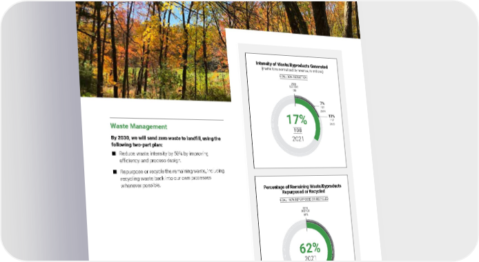 2021 Owens Corning Sustainability Report | Overview | Summary & Highlights | 25 Waste Management By 2030, we will send zero waste to landfill, using the following two-part plan: ■ Reduce waste intensity by 50% by improving efficiency and process design. ■ Repurpose or recycle the remaining waste, including recycling waste back into our own processes whenever possible. FPO FPO Photo submitted by: Susan Raneri | Massachusetts, U.S. Golf course, Northborough, Massachusetts. Intensity of Waste/Byproducts Generated (metric tons normalized by revenue, in millions) GOAL: 50% R EDUCTION 201 8 BASE YEAR 13 0 7% 12 1 2019 10% 117 2020 17% 108 2021 62% 2021 201 8 BASE YEAR 60 % 64% 2020 63% 2019 Percentage of Remaining Waste/Byproducts Repurposed or Recycled GOAL: 100% REPURPOSED OR RECYCLED