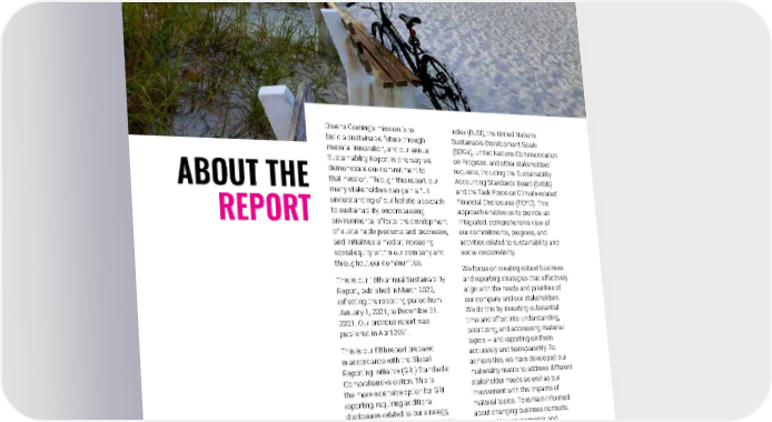 2021 Owens Corning Sustainability Report | Appendices | 287 ABOUT THE REPORT Owens Corning’s mission is to build a sustainable future through material innovation, and our annual Sustainability Report is one way we demonstrate our commitment to that mission. Through this report, our many stakeholders can gain a full understanding of our holistic approach to sustainability, encompassing environmental efforts, the development of sustainable products and processes, and initiatives aimed at increasing social equity within our company and throughout our communities. This is our 16th annual Sustainability Report, published in March 2022, reflecting the reporting period from January 1, 2021, to December 31, 2021. Our previous report was published in April 2021. This is our fifth report prepared in accordance with the Global Reporting Initiative (GRI) Standards: Comprehensive option. This is the more extensive option for GRI reporting, requiring additional disclosures related to our strategy, ethics and integrity, and governance. We report at this level because we believe that transparency is an essential component of any sustainability effort. In addition, this report addresses disclosures and material issues related to CDP (formerly the Carbon Disclosure Project), the Dow Jones Sustainability Index (DJSI), the United Nations Sustainable Development Goals (SDGs), United Nations Communication on Progress, and other stakeholders’ requests, including the Sustainability Accounting Standards Board (SASB) and the Task Force on Climate-related Financial Disclosures (TCFD). This approach enables us to provide an integrated, comprehensive view of our commitments, progress, and activities related to sustainability and social responsibility. We focus on creating robust business and reporting strategies that effectively align with the needs and priorities of our company and our stakeholders. We do this by investing substantial time and effort into understanding, prioritizing, and addressing material topics — and reporting on them accurately and transparently. To achieve this, we have developed our materiality matrix to address different stakeholder needs as well as our involvement with the impacts of material topics. To remain informed about changing business contexts, stakeholder requirements, and emerging trends, we regularly review our list of material topics and their relative priority, and we update them when appropriate. A discussion of our ongoing stakeholder engagement can be found in the Stakeholder Management & Material Issues section of this report. Photo submitted by: Susan Burkett | Toledo, Ohio, U.S. Anna Maria Island, Florida, U.S.